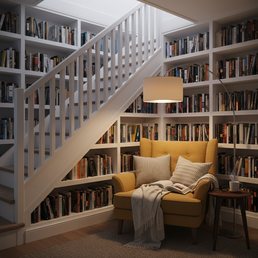 - Biblioteczka pod schodami: Wykonane na wymiar regały, dopasowane do skosu schodów, to marzenie każdego miłośnika książek. Taka domowa biblioteczka staje się piękną i intelektualną ozdobą salonu.