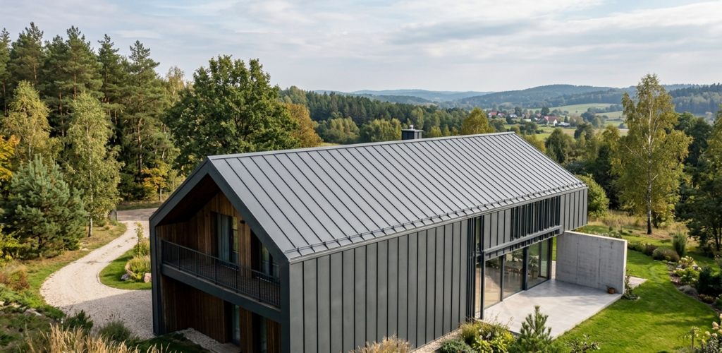 - Styl nowoczesnej stodoły/skandynawski: Blacha na rąbek stojący to niemal ikoniczny wybór dla tego typu projektów.
