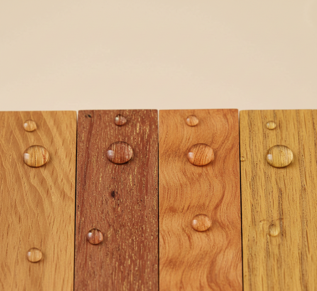 - Merbau: Ciemne, czerwono-brązowe drewno ze złotymi cętkami, niezwykle stabilne i odporne.